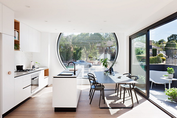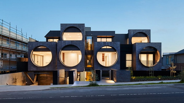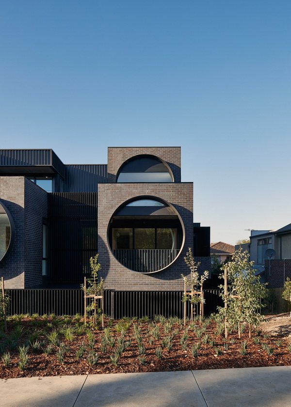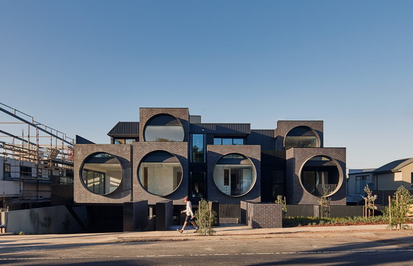 Những ô cửa sổ tròn làm nổi bật mặt tiền gạch lát của khối nhà chung cư này được thiết kế bởi công ty Australia kiến trúc BKK Architects cho khu ngoại ô phía Đông Ivanhoe ở Melbourne.